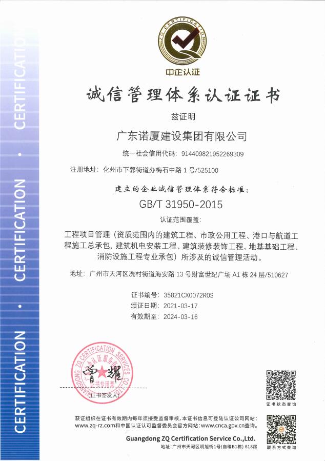 广东诺厦建设集团有限公司是诺厦集团的核心企业,具备国家房屋建筑工程施工总承包壹级、市政工程施工总承包壹级、港口与航道工程总承包、建筑装修装饰工程、消防设施工程、地基基础工程、机电设备安装工程、体育场地设施工程、建筑智能化工程、河湖整治工程、水利水电工程等资质。......